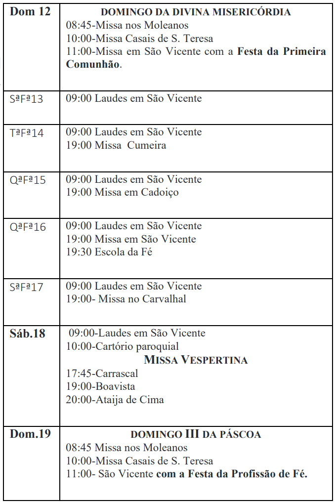 Fique a par de todos os serviços que vão ocorrer esta semana na Paróquia de Aljubarrota.